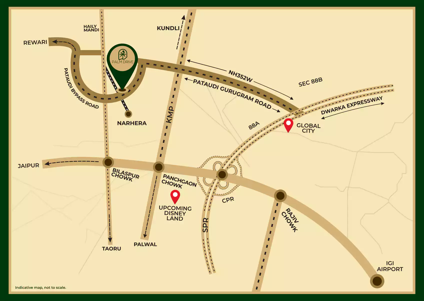 Deen Dayal Jan Awas Permium Residential Plots at Sector – 3 Pataudi, Greater Gurugram, is strategically located on NH-352W, KMP, NH8, and Dwarka Expressway, with top hospitals, schools, and universities nearby—ensuring convenience, healthcare, and quality education within easy reach.